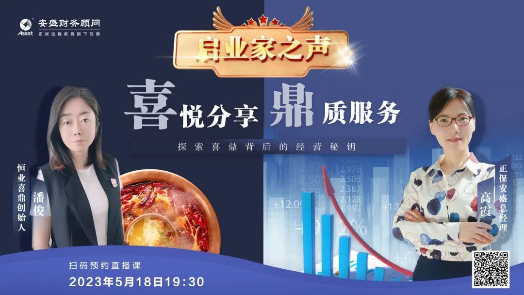 5月18日19:30,安盛推出《啟業(yè)家之聲》第一期,由安盛總經(jīng)理高霞女士和“喜鼎連鎖火鍋”品牌創(chuàng)始人潘俊女士親臨對話,帶來《喜悅分享 鼎質(zhì)服務(wù),探索喜鼎背后的經(jīng)營秘鑰》主題訪談。本次直播采用訪談對話的形式,讓大家在輕松的聊天中了解喜鼎的制勝法寶,在經(jīng)驗交流中學習企業(yè)的經(jīng)營之法,在全程多輪抽獎中感受活動的喜悅和熱情,活動得到大家的一致好評。